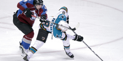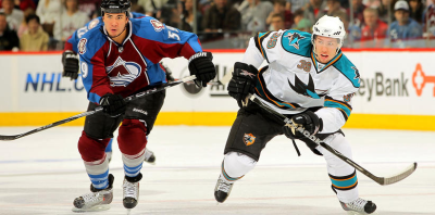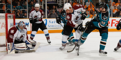 In the third, the Big 3 came out strong as they were reunited and dominated in the Avs zone but still could not convert. For the next five minutes, the Sharks seemed to be sleeping on the job and a horrible defensive lapse resulted in Colorado's Yip scoring the game leading goal: 2-1 Avs. Ironically, Yip's goal was like an alarm clock going off and waking up the Sharks who began to push back with some urgency. Pavelski (pictured below) had a great scoring chance and Heater hit the post, yet none could get that elusive game tying goal. Yet on the same play, the puck found its way to Dan Boyle who buried past Anderson: 2-2 Sharks. Not two minutes later, Colorado captain Foote lost a neutral boards battle with Pavelski, springing the Sharks on a two-on-one offensive chance. With Setoguchi driving to the net, Pavelski wound back to shoot the puck but left it behind. He was able to recover and on second effort beat Anderson for his second of the game, fifth of the series: 3-2 Sharks. The Avs began to challenge the Sharks in their own zone and their D-men started to jump into the play which resulted in a few breakaway chances for the Sharks. Manny Malhotra and Heatley had a great look as did Marleau and Torrey Mitchell but none could convert. With great defensive work by Dan Boyle and others, the Sharks were able to keep the lead until Colorado pulled their goalie for the extra attacker in the waning minutes of the third. Yet some great saves by Nabby and two empty net goals by Setoguchi and Murray sealed the deal for the Sharks who defeated the Colorado Avalanche 5-2 and winning the series 4-2. The Sharks were moving on to round 2, the Western Conference Semifinals.