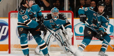 As the second period started, you knew that someone was going to break - Anderson or Nabokov, it was going to happen. The Sharks continued their dominance with every player contributing. Scott Nichol and rookie Dwight Helminen both found themselves on breakaways but were stopped by Anderson. Then finally, almost halfway into the second, a goalie cracked and a goal went up on the scoreboard. The Sharks found themselves on the rush with Patty pushing the puck on the left side with Couture driving towards the net and Heater on the right wing. With a cross ice pass, Marleau laid the puck on Heater's stick and he rifled a shot towards the net, or so Anderson thought. The shot from Heatley was actually a shot-pass that hit Couture's stick and deflected in: 1-0 Sharks. That was rookie Logan Couture's (pictured above) first playoff goal in the NHL. A player from the Sharks affiliate in Worcester, Massachusetts - Couture was brought up during the Sharks losing streak to help spark some life into the team. He did so well that he has been with the Sharks since. With the other injuries to the Sharks, rookie Dwight Helminen was also recalled from Worcester as well as rookie defensemen Jason Demers. Just as a side note, the Worcester Sharks are also in the AHL playoffs and have already moved on to round 2. Just goes to show that even with their top scorers playing for San Jose, the farm team of the Sharks is filled with high caliber talent - great news for the Sharks organization as a whole.